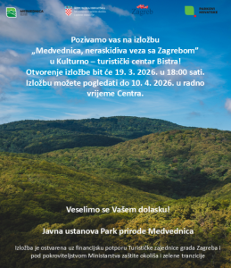 U suradnji s Parkom prirode Medvednica, Kulturno-turistički centar Bistra organizira otvorenje izložbe „Medvednica, neraskidiva veza sa Zagrebom“, koje će se održati 19. ožujka u 18 sati.