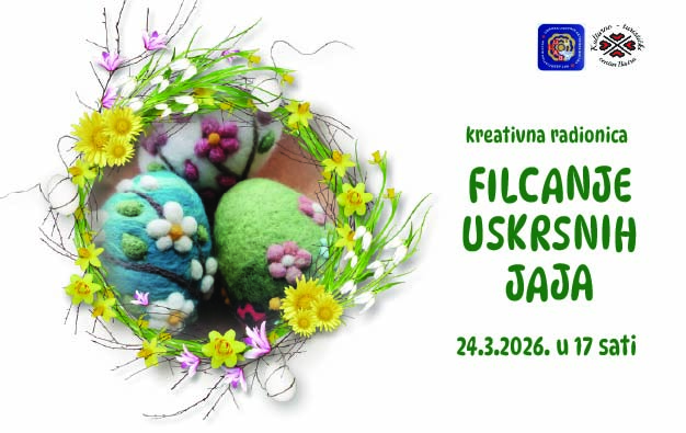 Radionicu vode Ivana Mikić i Snježana Martinčić, a sudionici će imati priliku naučiti tehniku filcanja i izraditi jedinstvene uskrsne ukrase. Zbog ograničenog broja mjesta potrebna je prethodna prijava putem e-maila: ivanamikic122@gmail.com.
