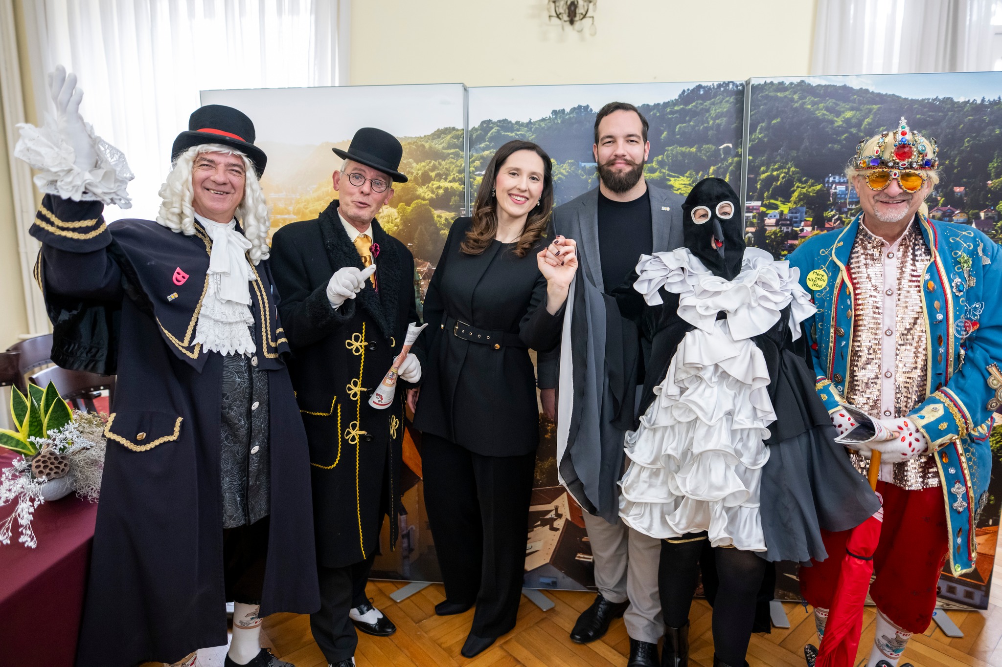 U gradskoj vijećnici održan je zajednički kolegij Fašničke vlade s privremeno bivšim gradskim čelnicima i pročelnicima, u prepoznatljivom duhu satire, humora i tradicije koji već dva stoljeća obilježavaju Samoborski fašnik.