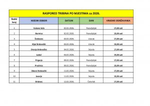 Raspored održavanja javnih tribina: