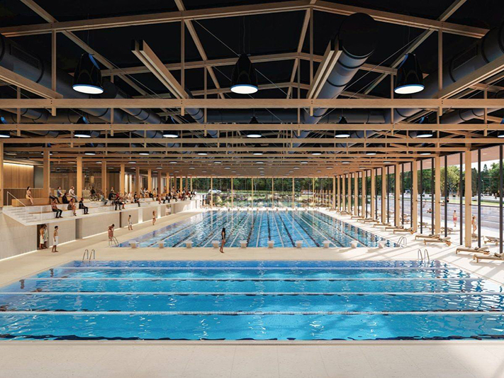 Gradski bazen planiran je na zemljištu površine oko 32.000 četvornih metara, podno Lovačkog doma, uz Ulicu bana Josipa Jelačića. Prema pobjedničkom rješenju, ključni materijali bit će drvo i staklo, oblikovani tako da se skladno uklope u prirodni teren i okoliš.
