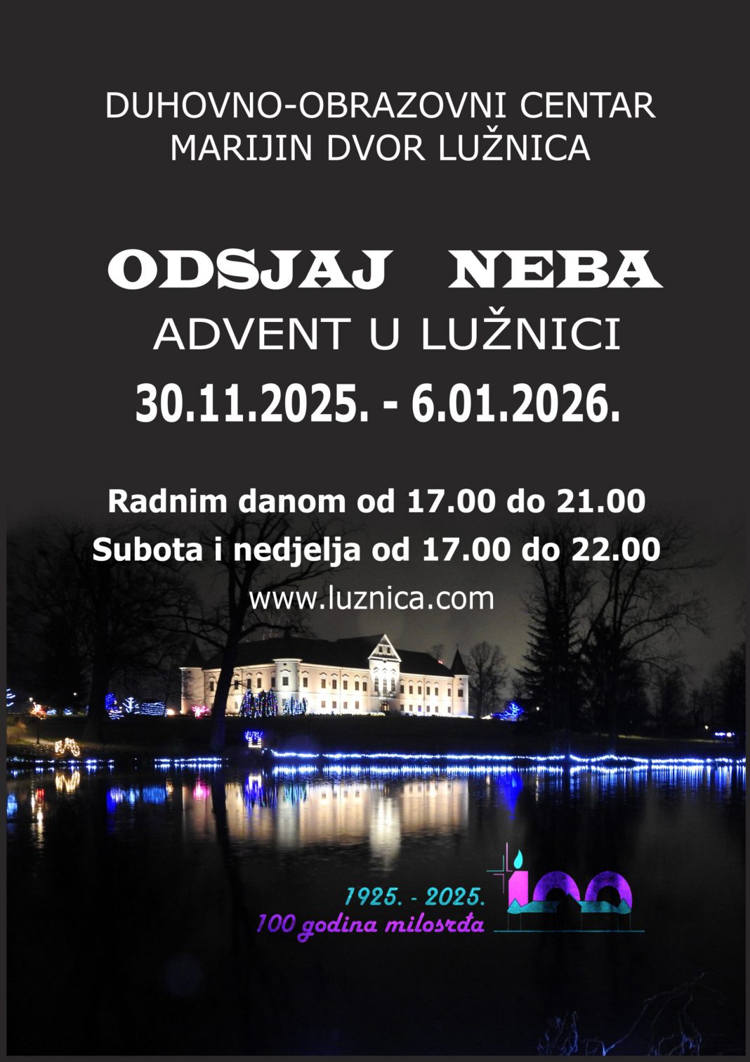 Advent u Lužnici otvoren je od 30. studenoga 2025. (prva nedjelja došašća) do 6. siječnja 2026. (Svetkovina Tri Kralja).