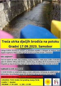 U nedjelju 17.09. udruga DJECA ZA BOLJI SVIJET iz Samobora zajedno s Udrugom za sindrom Down Zagreb organizira TREĆU utrku dječjih brodića na potoku Gradni u Samoboru.